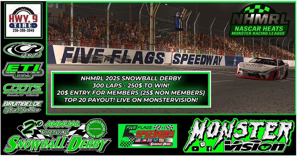*WE ARE IN NO WAY AFFILIATED WITH FIVE FLAGS OR THE SNOWBALL DERBY. THESE EVENTS ARE FOR THE VIRTUAL IRACERS AND ALL BUY INS FOR ENTRY GOES DIRECTLY TO THE PAYOUTS AND RUNNING THE LEAGUE. THIS IS AND ALWAYS HAS BEEN A ZERO PROFIT LEAGUE THAT IS HERE STRICTLY FOR THE FUN AND LOVE OF RACING AND RECREATING EVENTS LIKE THESE!
